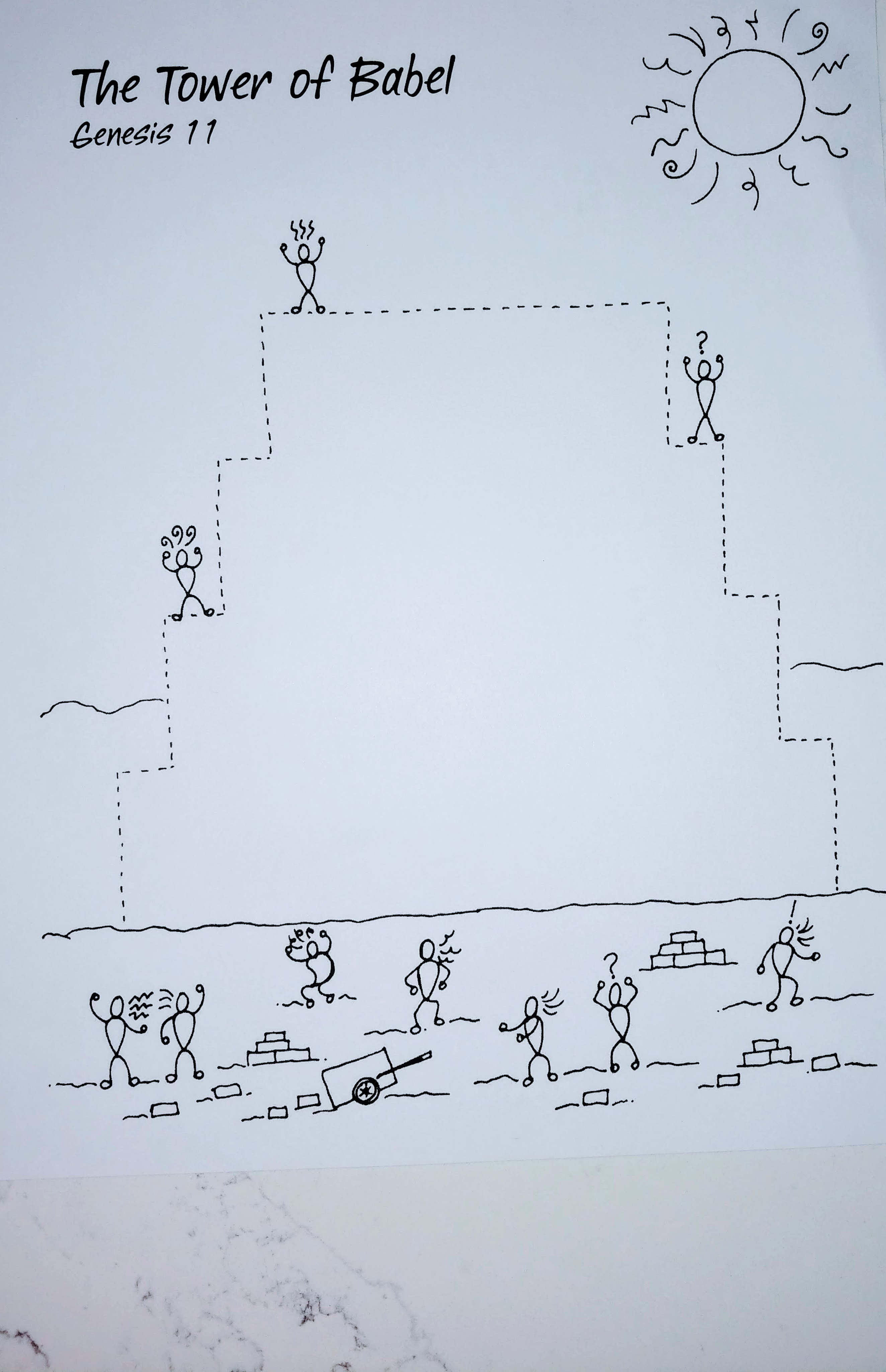 - Print 1 Tower of Babel worksheet for each child, here.